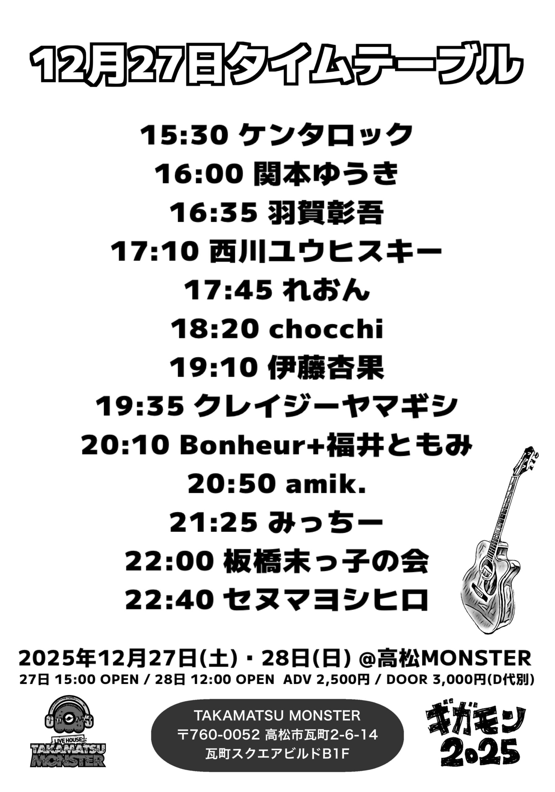 セヌマヨシヒロ(THE GOD LIKE CHORD)/羽賀彰吾/れおん/クレイジーヤマギシ(THE GOD LIKE CHORD)/伊藤杏果/みっちー(シンガロンパレード)/板橋末っ子の会/amik./chocchi(SOME RISE)/関本ゆうき/Bonheur+福井ともみ/西川ユウヒスキー/ケンタロック